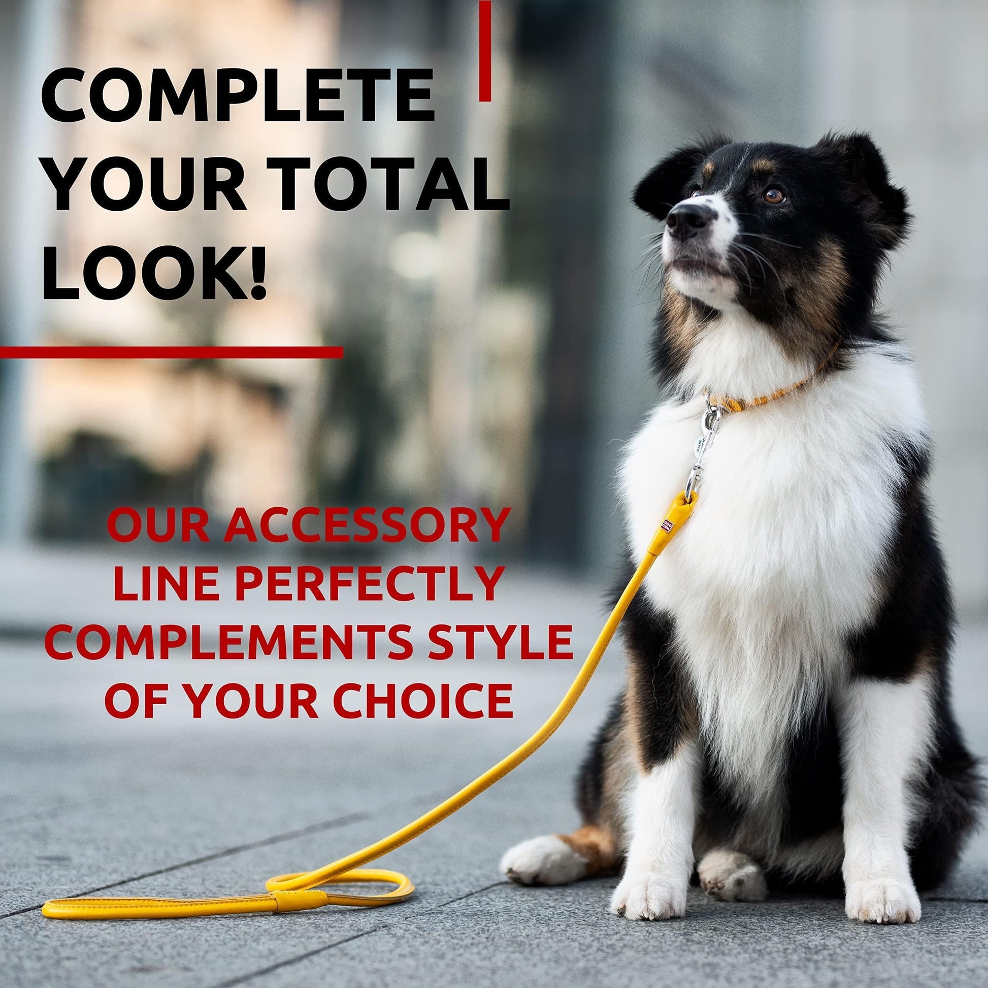 Rolled Leather Dog Leash 6Ft * 0.5 in for Small Medium and Large Dogs Heavy Duty Leather Puppy Leash for Outdoor Walking Running Training Yellow Color