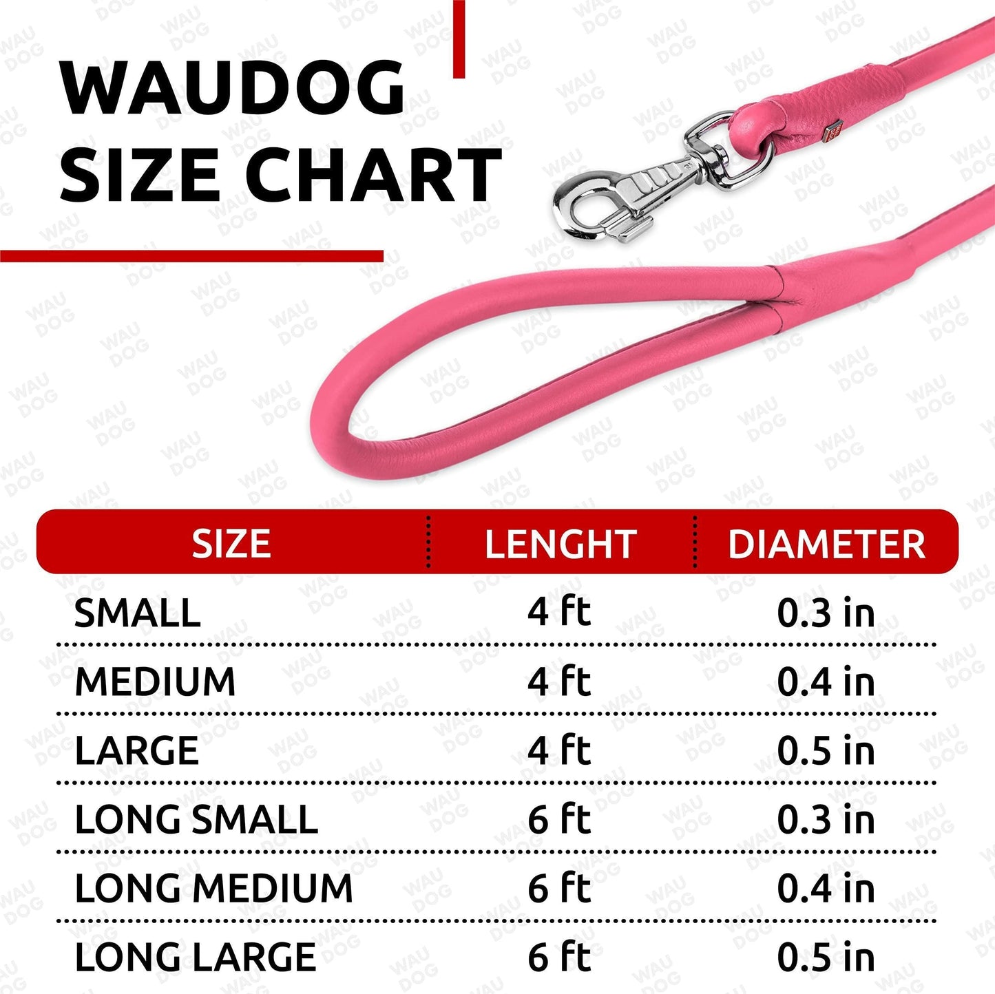 3.From the smallest to the biggest dogs The Glamour leash comes in 5 sizes so that you can choose the thickness that will be suitable for your pup. This leather dog leash works for large dogs and for tiny puppies!