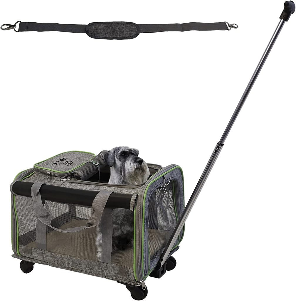 Includes: Pet bag, shoulder strap, wheeled luggage cart