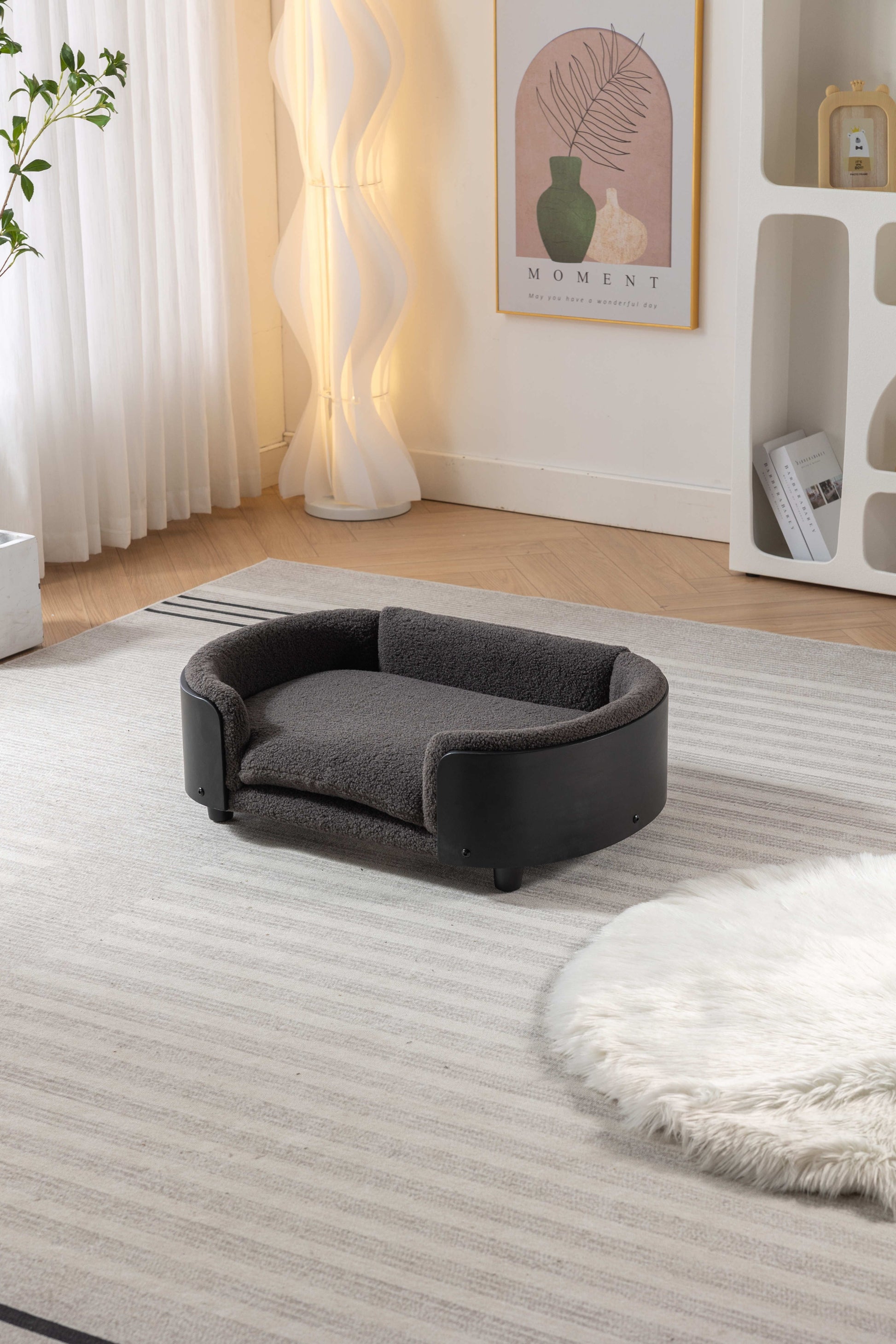 Scandinavian style Elevated Dog Bed Pet Sofa With Solid Wood legs and Black Bent Wood Back, Cashmere Cushion,Mid Size
