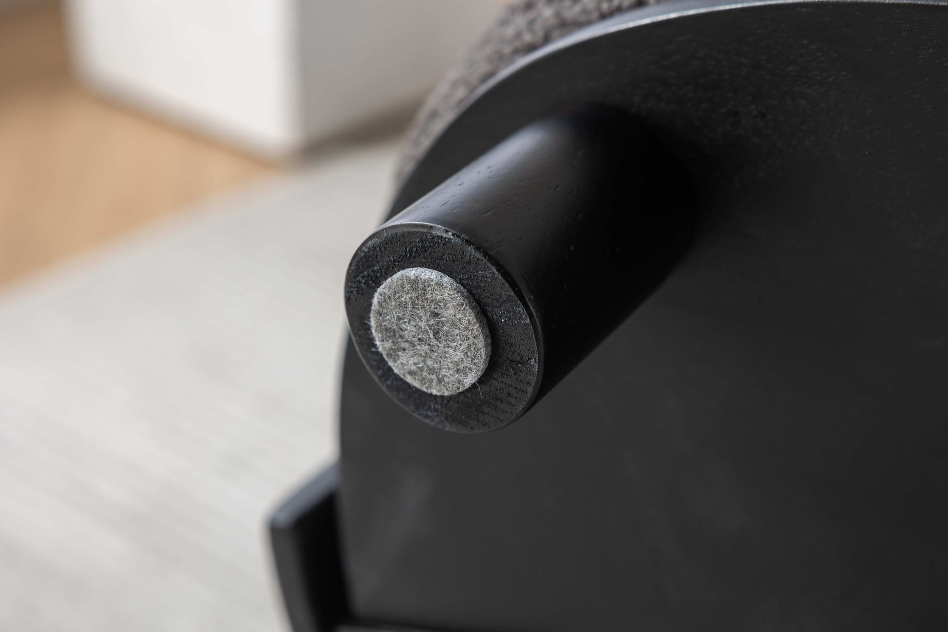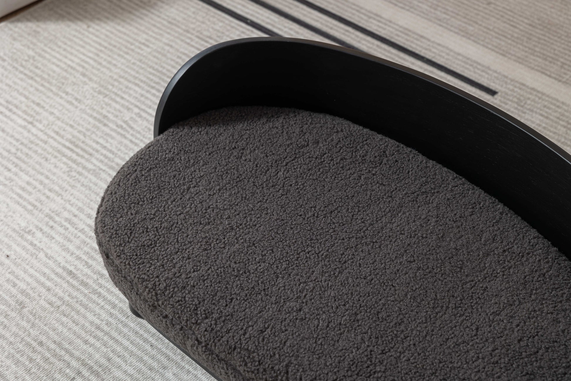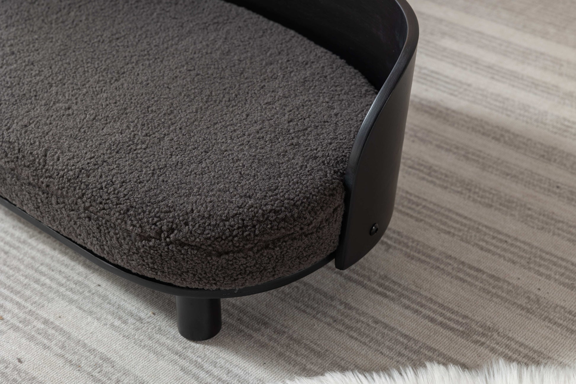 Scandinavian style Elevated Dog Bed Pet Sofa With Solid Wood legs and Bent Wood Back, Cashmesh Cushion, Black wood, Darcy grey cashmesh