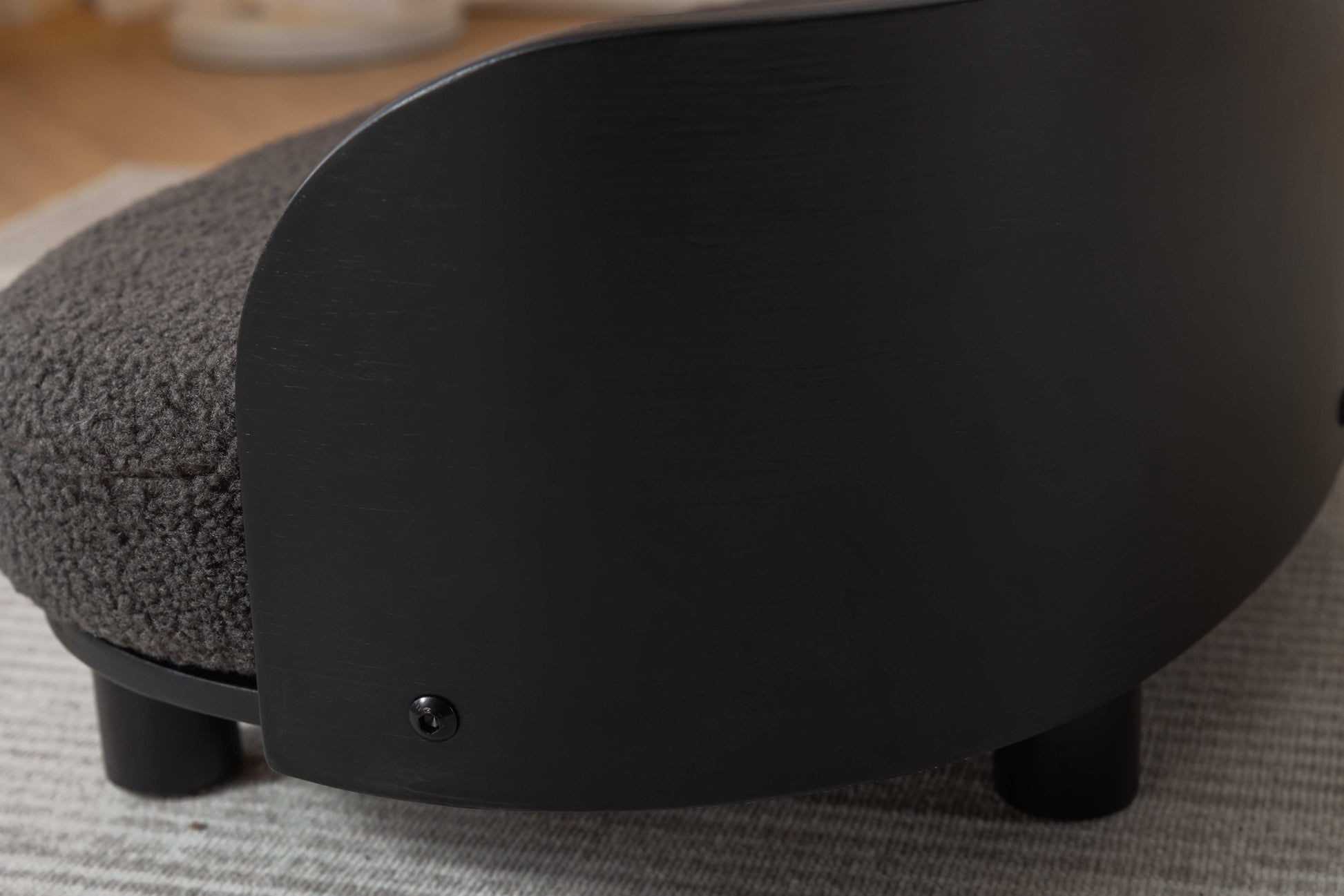 Scandinavian style Elevated Dog Bed Pet Sofa With Solid Wood legs and Bent Wood Back, Velvet Cushion, Black