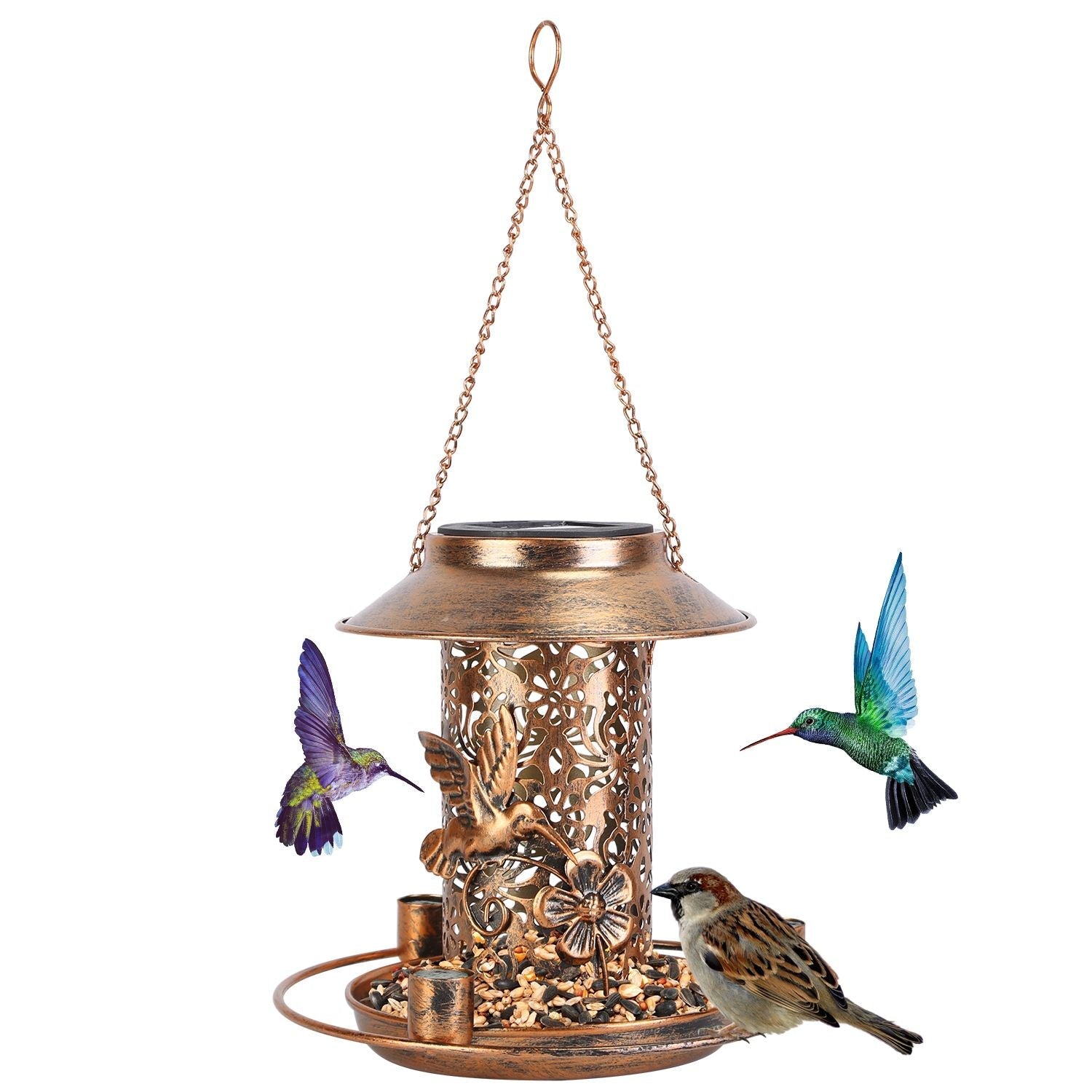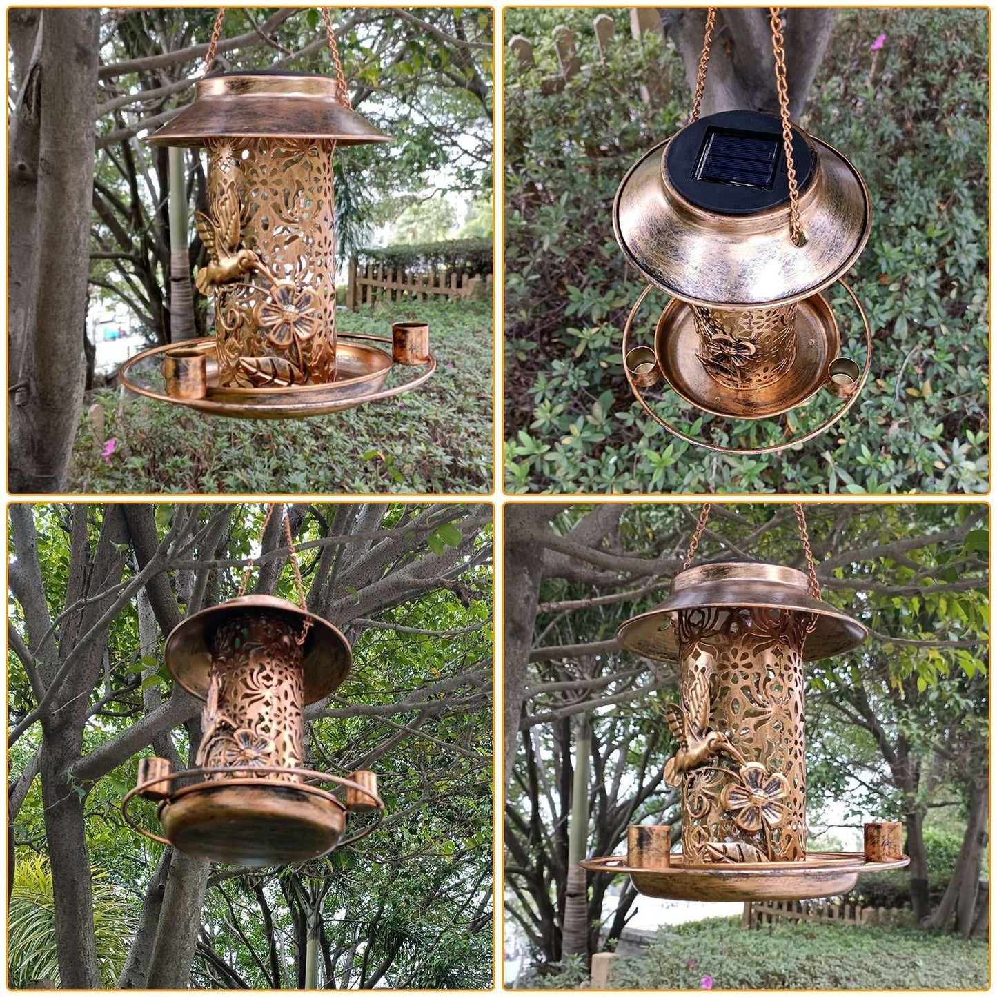 Solar Bird Feeder Decorative Hanging Bird Feeder Lantern Warm White Light Bird Feeder for Outdoor Garden Backyard