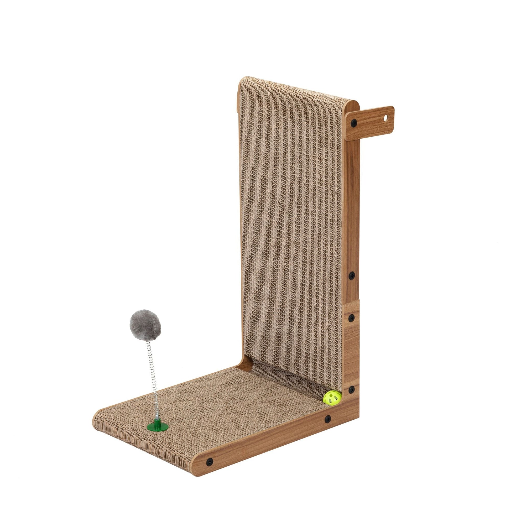 [Cat Scratching Pad]: This cat toy is covered with corrugated boards for scratching. The L shaped frame appearance helps to blend into any modern decor and adds more stability.