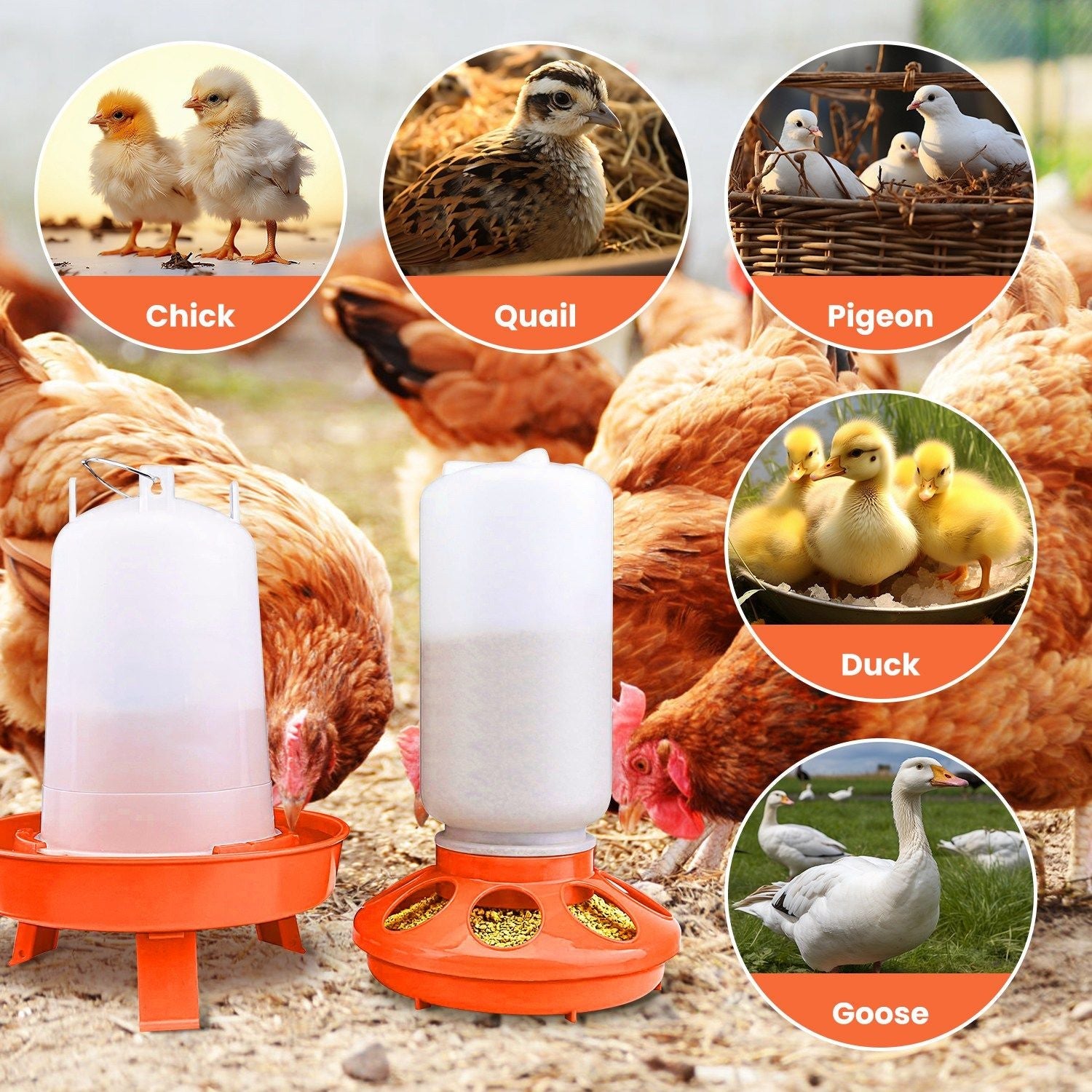 *No Waste & Mess*:Our scientific chicken waterer and feeder kit featured with anti-tipping and anti-spilling design provides well protection for your baby chicks,keeping them dry and warm. Compared to traditional feeding pail,our poultry feeder prevents your chicks from wasting food or making mess and reduce your feeding fees.