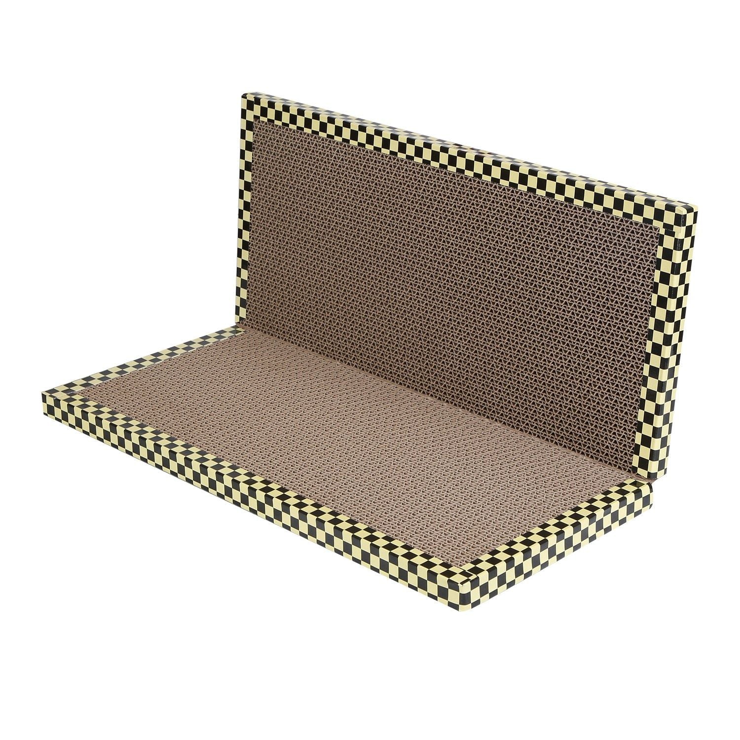 *Double-Sided Design*:Yellow and white grid patterns on the edge add fashionable elements to the cat scratcher,making it an eye-catching decoration in your house. Double-sided design allows you to flip over and reuse it,prolong the lifespan of this cat wall scratcher.