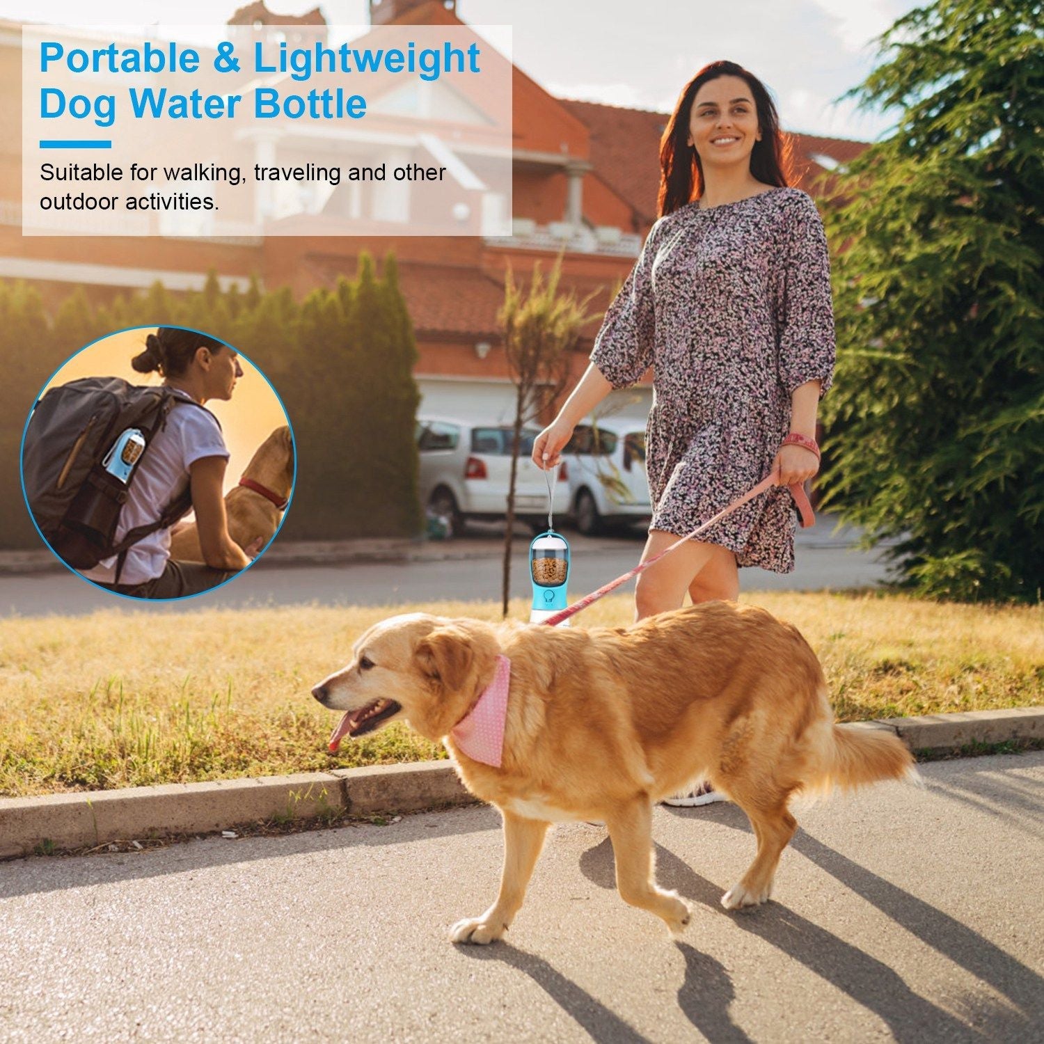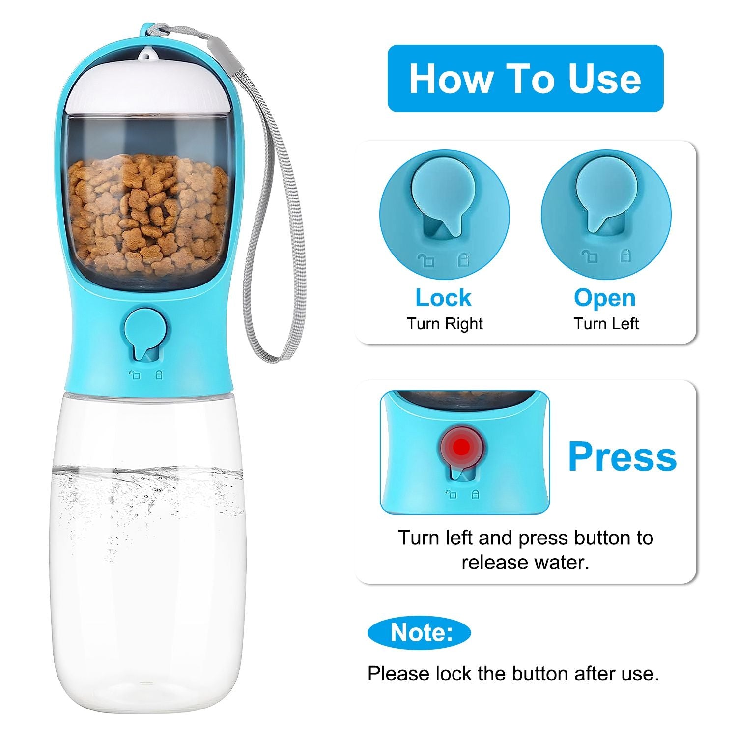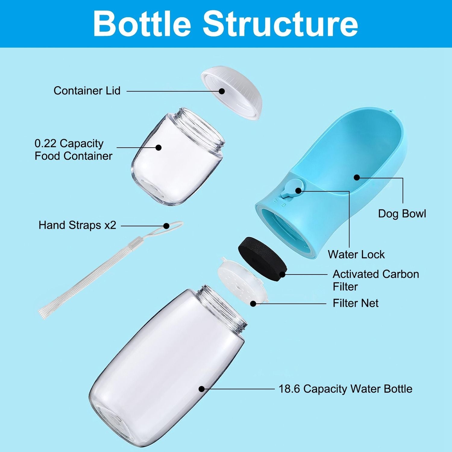 18.6OZ Portable Dog Water Bottle Pet Water Dispenser with Detachable Food Container Leak-Proof Lock Design for Dog Walking Traveling Hiking Outdoor Activities